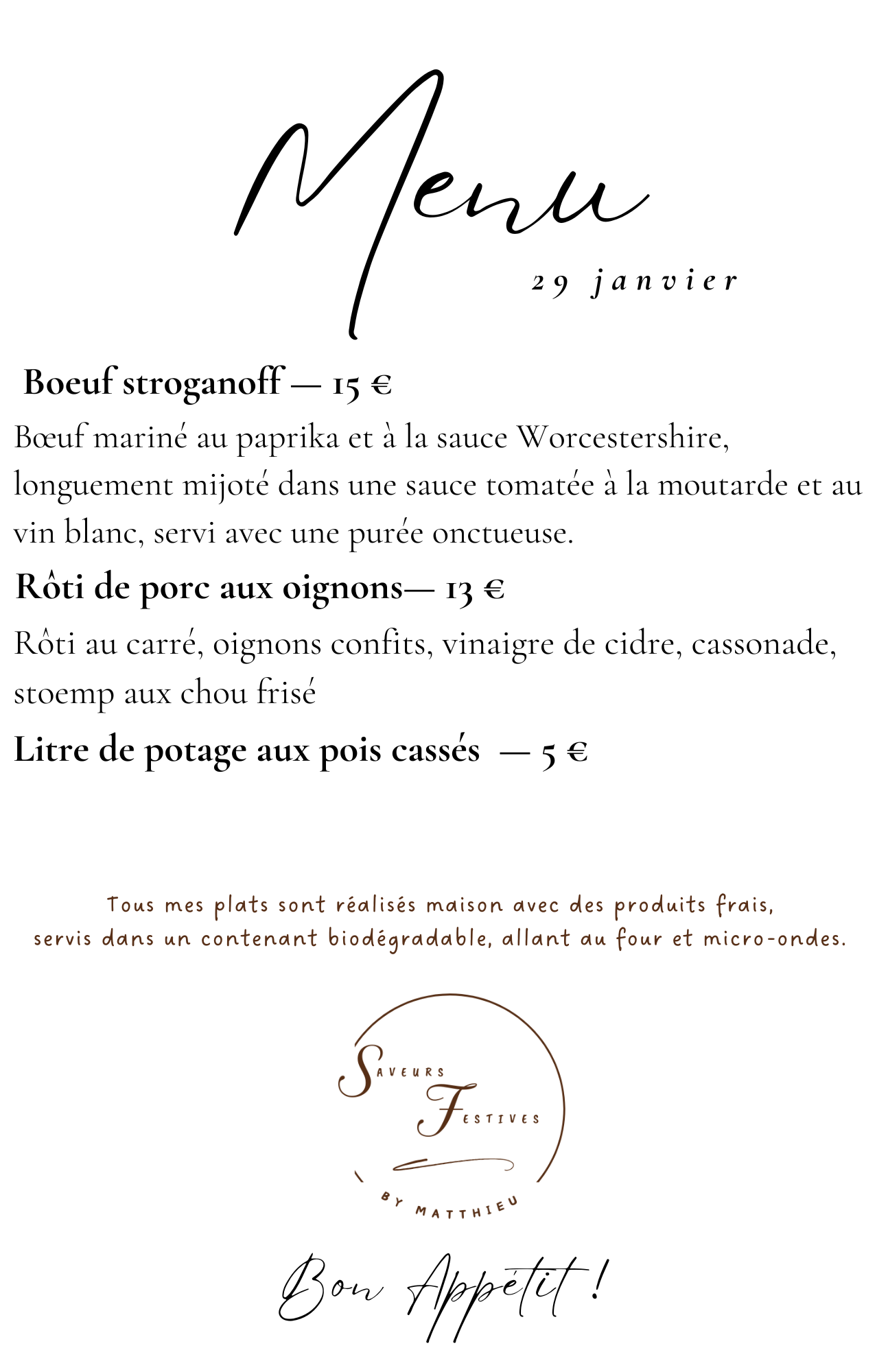 A emporter ? Tous mes plats faits maison dans votre frigo.